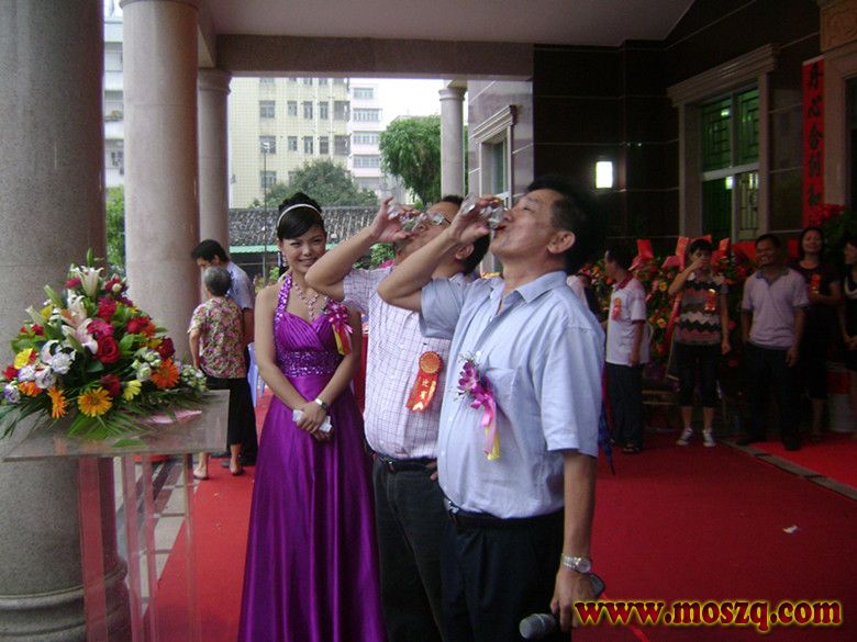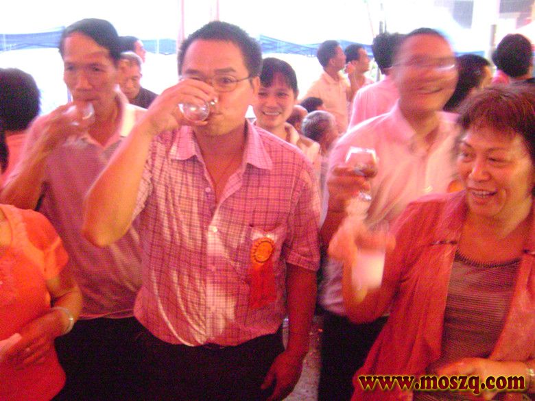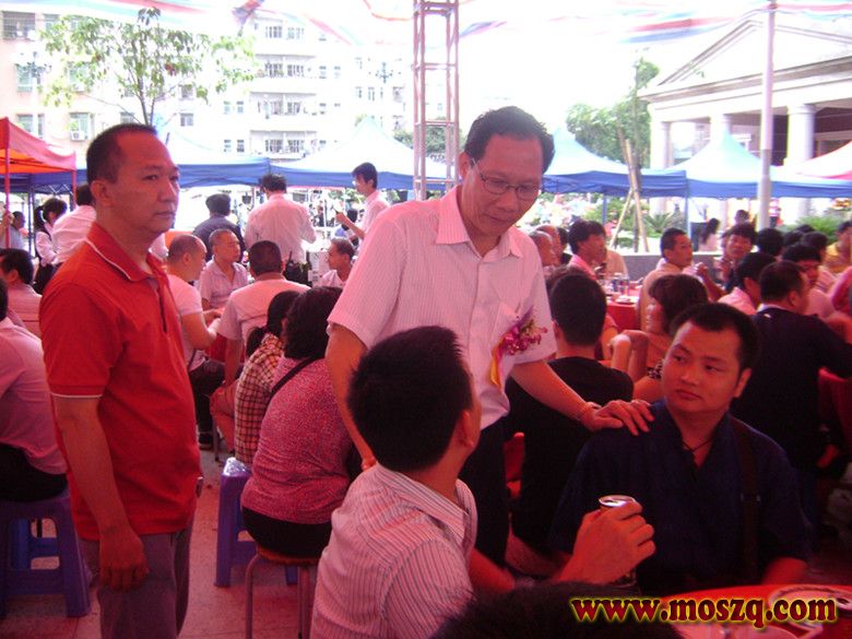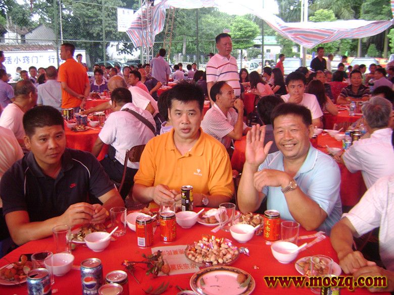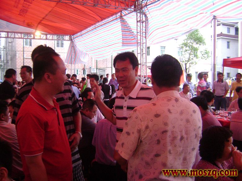 下午四点,各地贵宾纷纷到达,停车场停满小车,贵宾们边走边看,边赞叹。这时锣鼓声一片响起,莫家拳舞狮队在大楼的门庭们表演莫家拳。他都是五丶六十大爷爷,可是精神十足,红光满面。个个精神抖擞,打起莫家拳个个都搏得大家喝彩。他们足足表演了一个钟头。下午五点,一千多贵宾来自广东东莞丶江门丶雷洲丶广州丶汕尾丶封开,肇庆,还有广西,海南,香港,等地的莫氏宗亲都坐满在灯光球场里和大楼一层,董事长莫明春提议大家站立举杯,庆祝丹坑中心大楼落成酒会开始,人们一一举杯祝贺,干杯庆祝。这时又响起鞭炮声。人们投入到一片庆祝酒会的欢快海洋中。
