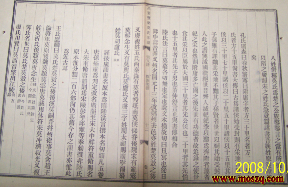 族谱方面,对莫敖一支论述最详尽的当属《民国高要丰乐围谱》。该谱以一卷的篇幅叙说莫氏流源,并在谱后罗列其他族谱谱序。部分摘抄如附图。